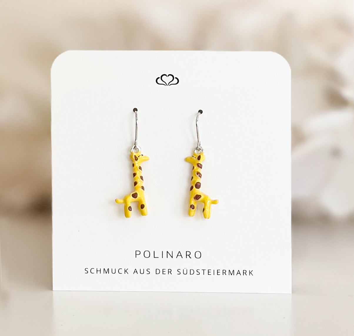 Die Ohrringe bestehen aus 925 Sterlingsilber, rhodinierten Ohrhaken und einem kleinen, entzückenden handbemalten Charmanhänger in Form einer Giraffe.