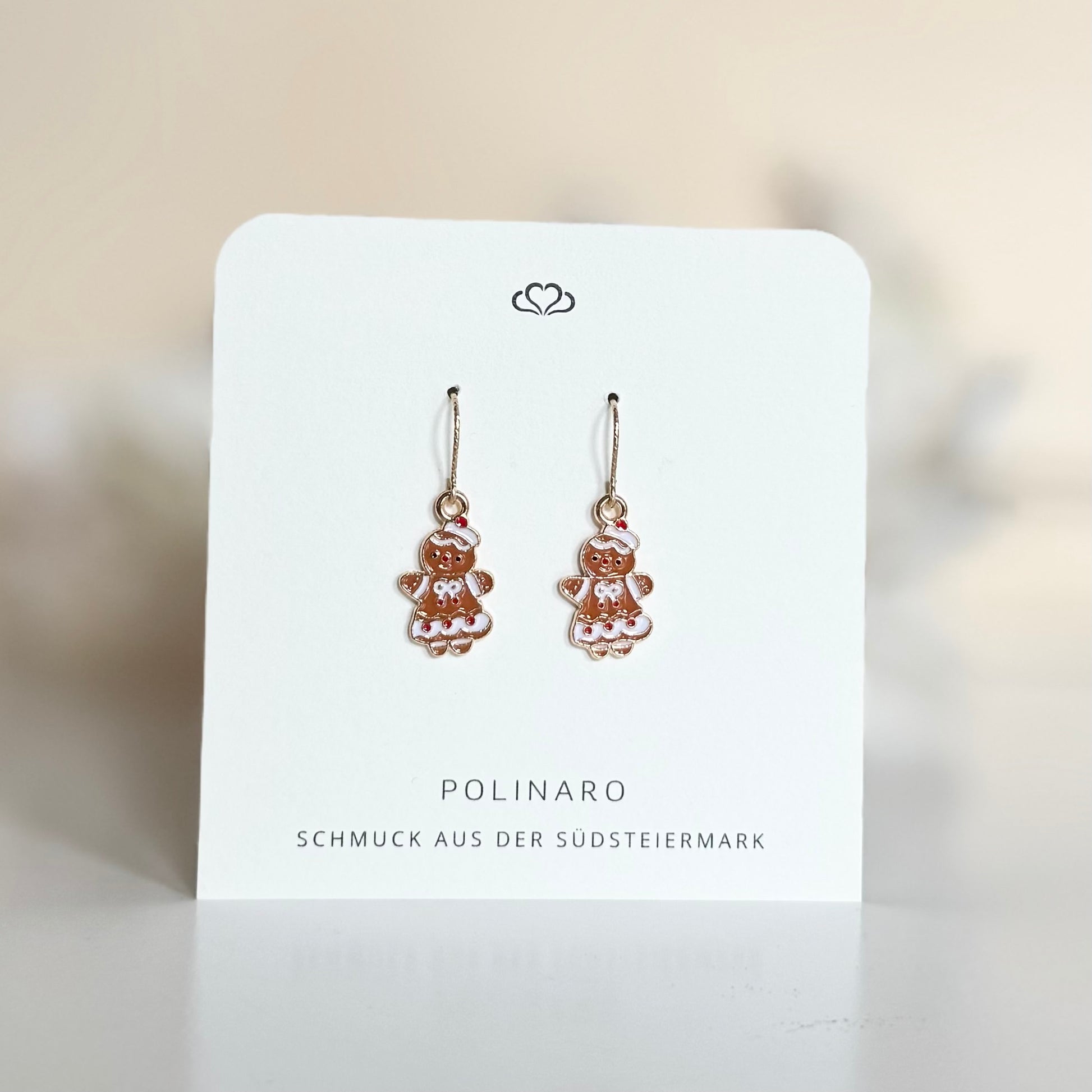 Die Ohrringe bestehen aus 14 Karat Gold Filled Ohrhaken (Oberfläche strukturiert) und einem herzigen "Lebkuchenmäderl" Anhänger.