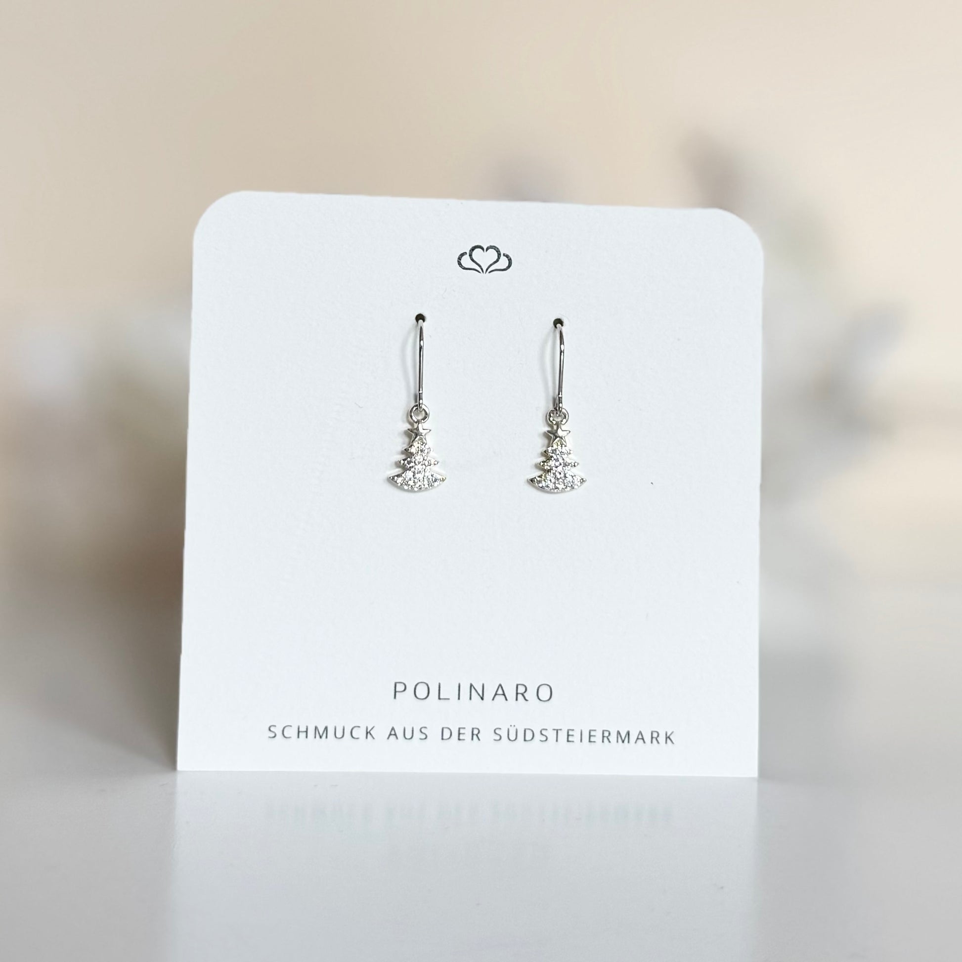 Die Ohrringe bestehen aus 925 Sterlingsilber, rhodinierten Ohrhaken und einem Messing Anhänger in Baumform mit kleinen Strasssteinchen.