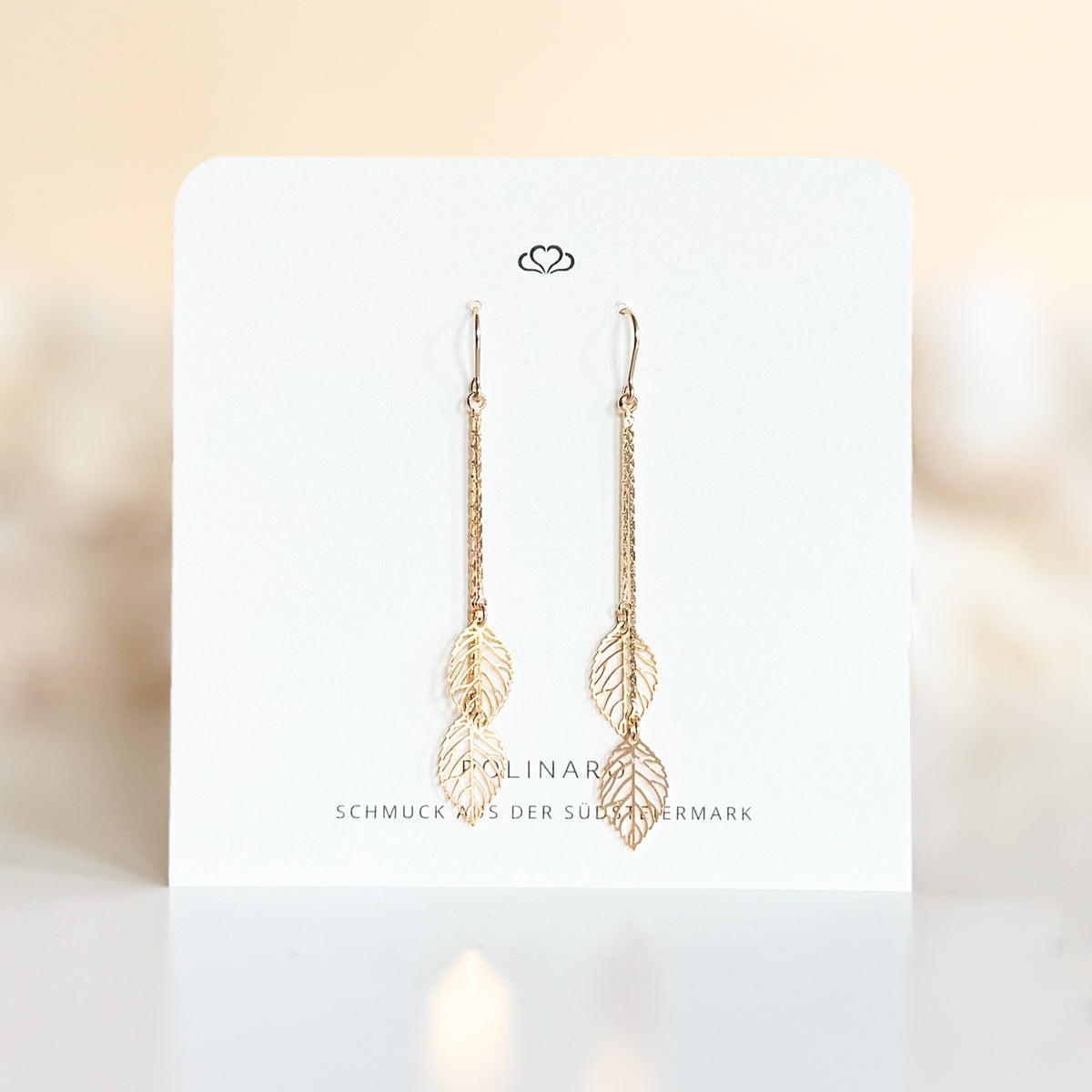 Die Ohrhaken sind vergoldet in langlebiger Qualität und auch für empfindliche Ohren geeignet und mit ganz, süßen und zarten Blättchen gestaltet.