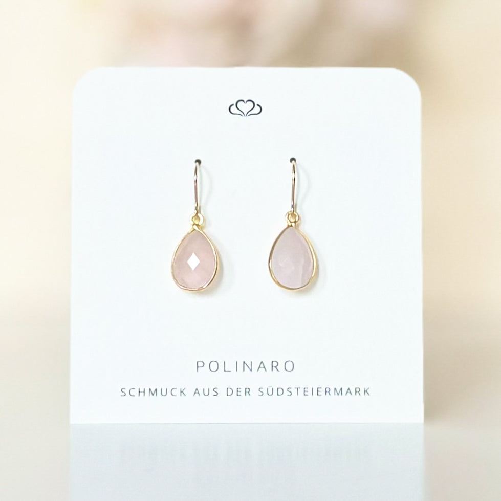 Die Ohrringe bestehen aus einem Anhänger mit tropfenförmige, orangen Mondstein und 14 Karat Gold Filled Ohrhaken.